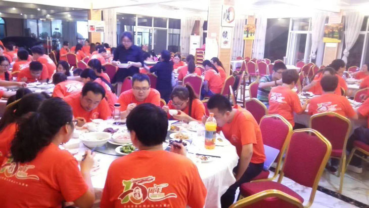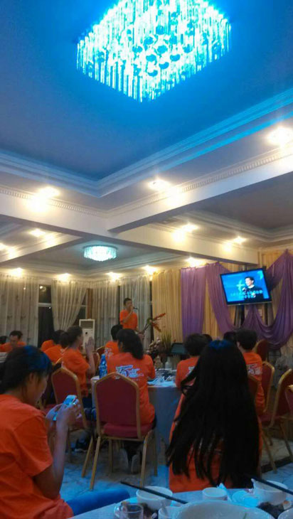 時間過得很快,一眨眼到了晚宴時間,一大家子在一個大廳吃飯,其樂融融。臺上我們公司大佬王經理帶頭唱起了歌給大家助興,大家也紛紛送上了祝福,我們的大家長尹總也唱起歌送給我們君通給在場的所有人。
