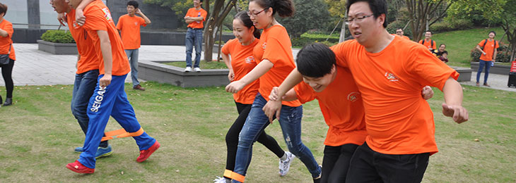 拔河比較在緊張激烈的氣氛中結束了,經過一番調整之后主持人又宣布兩人三足比賽即將展開,趁著還沒有輪到很多人都在一邊練起來了,都希望能收獲到好的名次。正式比賽中,有人跌跌撞撞,但也堅持到了終點,而我們要的是這種永不放棄的精神。