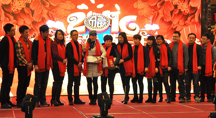 每年的晚宴抽獎都是大家長尹總變相的給員工發放福利的一種方式,當然也是我們期待的環節啦,因為不光有豐厚的禮品還有現金獎哦!一輪又一輪的抽獎,大家的吶喊聲,歡呼聲,為小伙伴得到獎時的喝彩聲,那樣的一片沸騰久久不能平息!與其說是某個人中獎,不如說是一份份好運的相互傳遞,把這份幸運和榮耀一直一直傳下去......