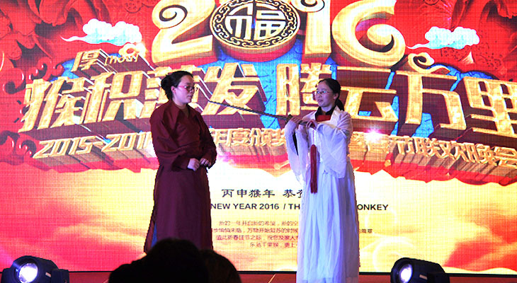 一年一度在春節前舉行的公司年會,是公司一年中重要的會議,也是對公司一年來各方面的總結及對員工一年來工作的的表彰,成功的公司年會可以提升企業形象,表達公司對員工的關愛之情,聯絡員工之間的感情,因而增加企業凝聚力。 2015年君通年會在一月二十八上午召開,這是我經歷的第十三次年會。