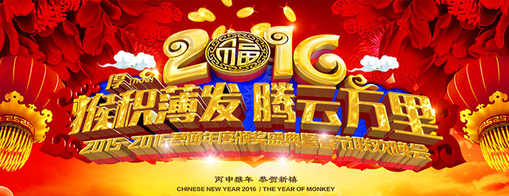 隨著舞臺顯示屏出現畫面,“猴積薄發,騰云萬里”2015-2016君通年度頒獎盛典暨春節聯歡晚會喜慶的畫面,展現在君通人眼前,這個是今年春晚的主題,這個也是我們公司設計總監,為每年年會設計的作品,寓意深厚,栩栩如生。
