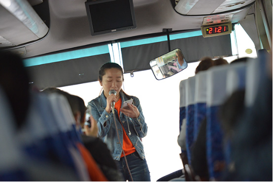 這次跟隨我們的是景區(qū)的導(dǎo)游-汪導(dǎo),汪導(dǎo)在車上向我們說了一下景區(qū)游玩的注意事項,以及我們隨后將要游玩的景點內(nèi)容,然后君通演唱大會開始了,先上來的是幾位麥霸爭相上臺表演,被他們的熱情感染到后,大家紛紛踴躍的上來表演。