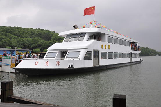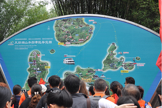 排隊沒多久我們上了游船,站在游船的甲板上,看著天目湖的景色,真是如詩如畫,百聞不如一見!