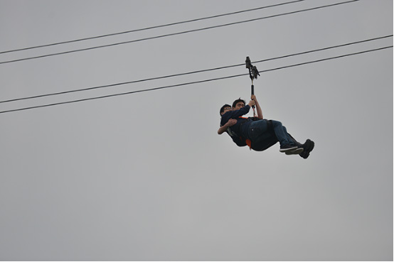 到了要離島的時候,汪導(dǎo)說我們可以去參加高空滑索,本身有點恐高的我,猶豫了一會兒后,決定還是去參加,因為覺得難得有這次的機會,我要去嘗試一下,也去突破一下自己,來到臺子上,緊張的穿戴好設(shè)備后,我和盧嘯嘯組隊開始了!一開始因為重心的原因,我們背對著,轉(zhuǎn)了一個身,沒有看到前面的景色,不過在這半分鐘不到時間里,真是爽快極了,涼爽的風(fēng)和觸之可及的湖面。