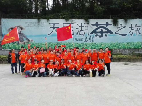一路上歡歌笑語不知不覺我們到達(dá)了目的地----天目湖,大家有序的下車跟著我們的導(dǎo)游向著天目湖景區(qū)入口走去,當(dāng)然,我們君通人在哪里都要留下我們一大家人的合影,我們都穿著公司的統(tǒng)一T恤,大家喊著統(tǒng)一的口號手里揮著君通的旗幟,開心的一幕留下了!