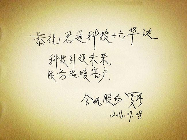 君通的成長離不開員工的辛勤耕耘,離不開所有君通家人的默默付出!是大家一起在共同努力打造和完善這個共同的家園!同樣也離不開廣大客戶朋友的信賴與支持,是他們十幾年如一日的與君通攜手同行,促進了君通的成長、發展和壯大,在君通17歲生日這樣重要的時刻,他們同樣沒有缺席,依然從遠方送來了真誠的祝福: