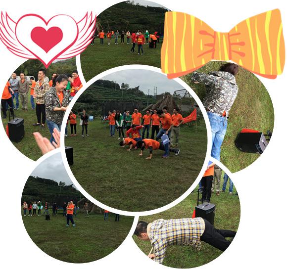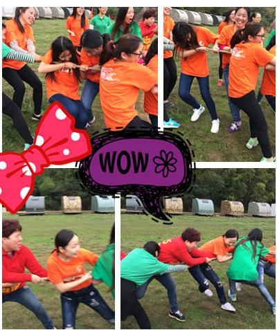 緊接著,行政部為大家準(zhǔn)備了豐富有趣的團隊活動:桃花朵朵開、拔河、四人五足、坐地起身、抓龍尾等,快來目睹一下他們的風(fēng)采吧: