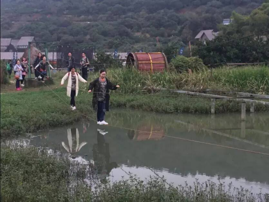 索橋上,康康高蒙一個優(yōu)美的交匯,弄得我們周圍的,全都出了一身冷汗,兩邊關(guān)注的小伙伴迅速穩(wěn)住鋼索,OK,完美通過,驚險,精彩!