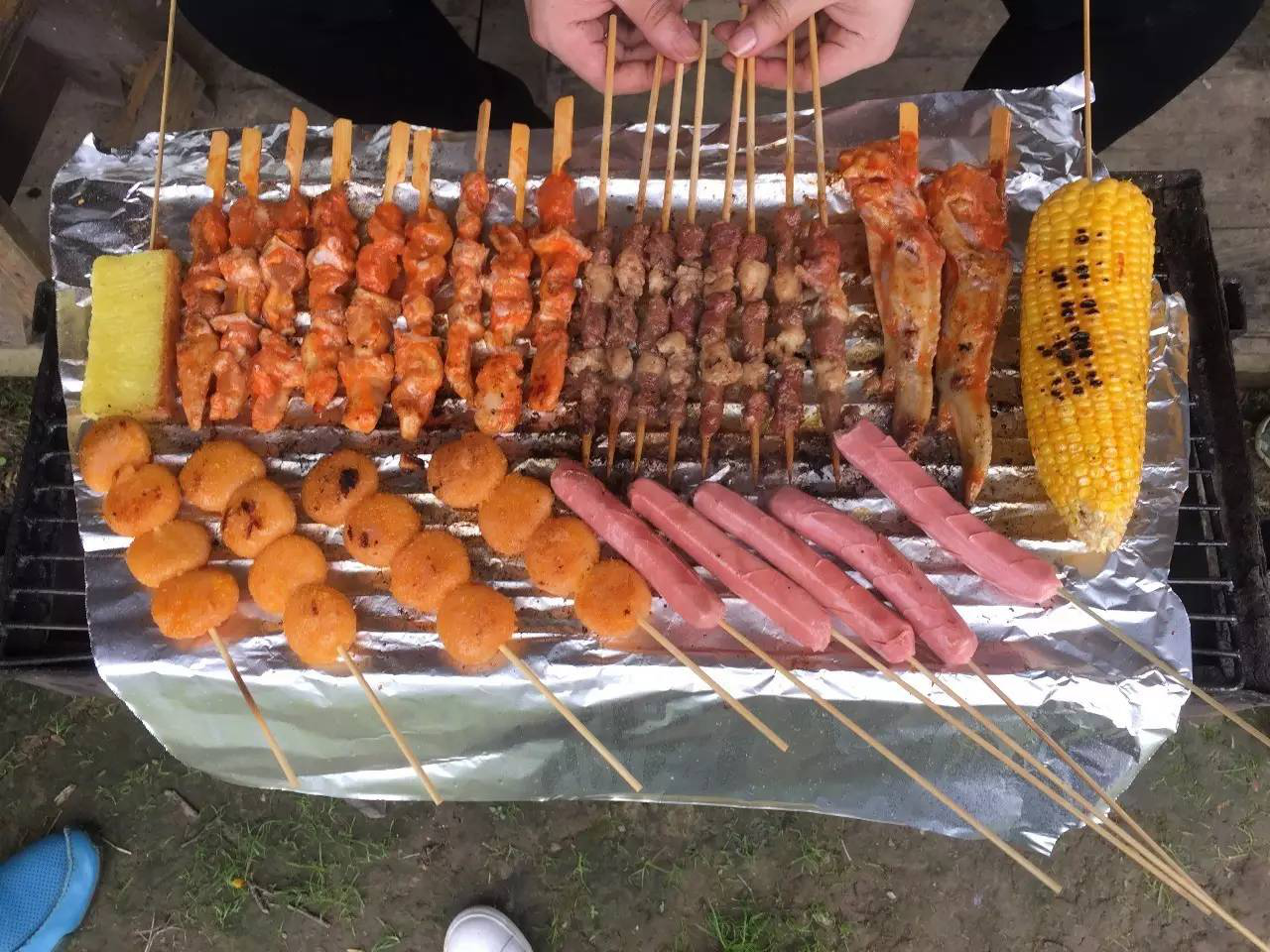 哇!燒烤攤擺起來了,新出爐的玉米,羊肉串,快來買呀!那個家伙是老葉嗎?烤肉做的好香呀!剛才烤好,已經(jīng)被瓜分了,以后退休了,你可以開個燒烤攤!到時我一定光顧!
