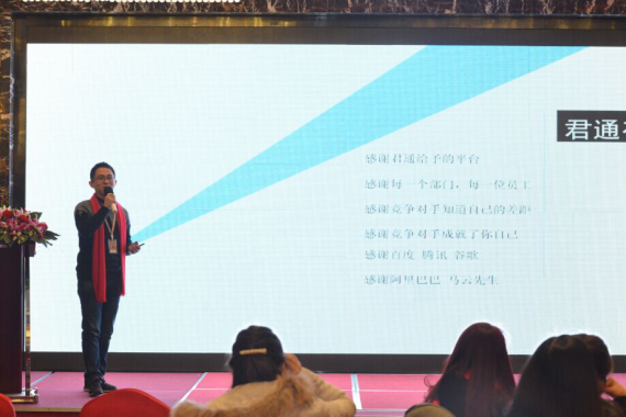 無錫君通的家人們在這早早地出發,來到會場,為這一個特殊的日子做好了準備。君通大家長尹可珍女士首先上臺致辭,并總結了這一年來的收獲,也為我們描繪了新一年的目標。然后,康總也作了精彩發言,感恩十六年來客戶的信任,感恩君通伙伴們的真誠付出。接著,市場部的精英們也分別上臺總結了這一年來的收獲,并雄心壯志地宣布了2017年的奮斗目標,大家團結一心,2017擼起袖子加油一起干!