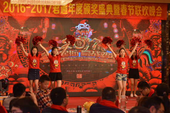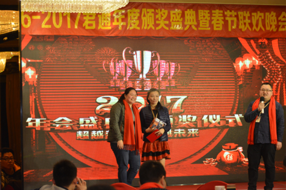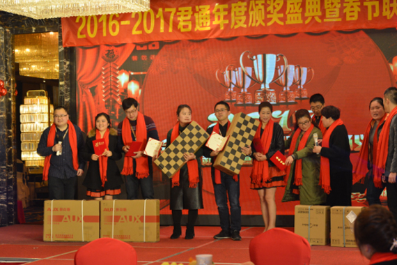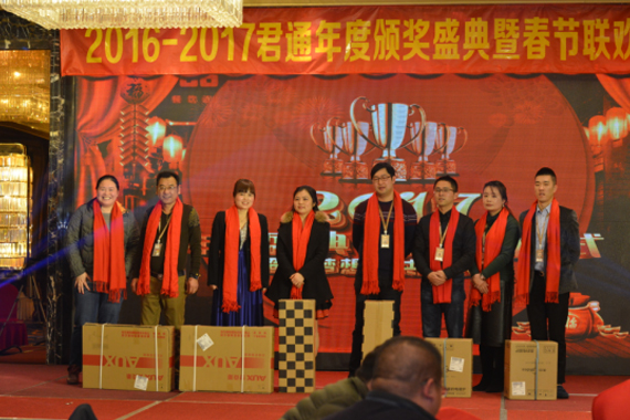 與眾不同的視覺盛宴剛剛結束,我們的“味覺盛宴”也已經準備緒。在伙伴們舉杯暢飲,享受各類美食的時候,激動人心的抽獎環節也一直在進行中,特等獎、一等獎、二等獎……各種獎品讓大家拿到手軟(在此也要恭喜中獎的小伙伴們,祝愿你們在新的一年運氣爆棚)。更為貼心的是,作為君通家人,每人都領到了一份“壓歲錢”。席間,尹總帶領著公司高管團隊向家人們祝酒,為了君通干杯,為了我們的2017干杯!這場聚會,讓我們感受到了家人般的熱情,這不僅僅是一次聚會,更是一次心與心的碰撞和交流!此情此景,讓我不由得在心中默念:這是我們的君通,這是我們的家!