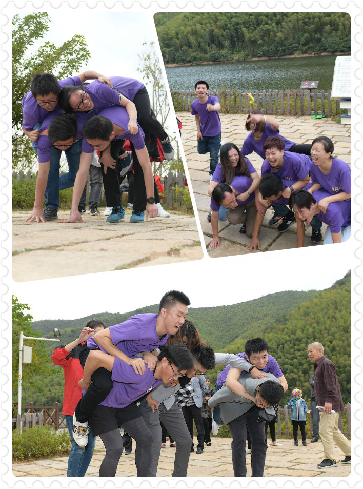 “七手八腳”則是考驗(yàn)了技巧和體力,每組的所有成員的手和腳必須按照要求的數(shù)目著地,從易到難,不斷變換著手腳的數(shù)目,拼速度和時(shí)間。團(tuán)隊(duì)里必須要有體力擔(dān)當(dāng)著,因?yàn)殡y度升級(jí)后就會(huì)呈現(xiàn)“疊羅漢”,來(lái)組圖瞧瞧,不禁讓人捧腹大笑