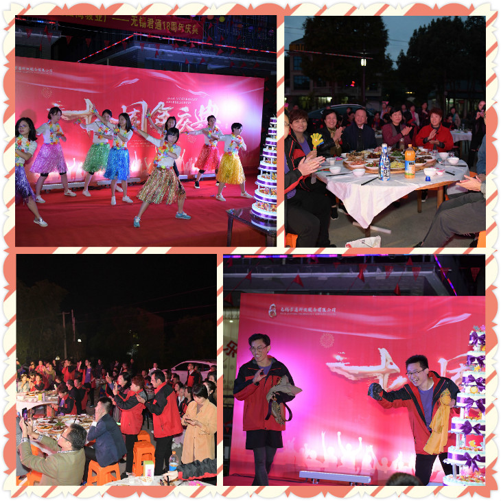 活動(dòng)過(guò)后伙伴們都換裝啦,經(jīng)過(guò)一番打扮,美女帥哥們齊上陣,來(lái)到簽名墻簽到留影,這氣場(chǎng)陣勢(shì)一點(diǎn)不輸明星啊!簽到留影完畢,我們的鏡頭聚焦到主會(huì)場(chǎng)---18典的晚會(huì)現(xiàn)場(chǎng)。璀璨奪目,星光熠熠的舞臺(tái)場(chǎng)景增添了慶典的氣氛。一波又一波的高潮,久久未能平息,才子佳人們的載歌載舞,市場(chǎng)部的獨(dú)舞,團(tuán)舞,客服熱辣的草裙舞,新晉團(tuán)隊(duì)歌王康總,談經(jīng)理,朱經(jīng)理的獻(xiàn)唱; 吳老師夫婦的京劇表演以及還有來(lái)自遠(yuǎn)方的寧夏藝術(shù)團(tuán)的張老師,因?yàn)楸晃覀兊膽c典氛圍感染,自發(fā)上來(lái)表演了一段京劇,把晚會(huì)的前半段推向了。康總精心準(zhǔn)備的抽獎(jiǎng)獎(jiǎng)項(xiàng)也是掀起了一股熱浪,設(shè)置了ipad作為獎(jiǎng)項(xiàng),雖說(shuō)初秋的夜晚有點(diǎn)小涼,但是因?yàn)槲覀兪酥苣晖頃?huì)的舉辦,引來(lái)了當(dāng)?shù)鼐用竦膰^,拍手稱(chēng)贊,使得大家覺(jué)得格外的溫暖。客戶(hù)的祝福視頻看的讓我們君通人感到自豪與感動(dòng),歡快的時(shí)光總是覺(jué)得時(shí)間很快,晚會(huì)在意猶未盡中結(jié)束,但是熱度一直在持續(xù)。