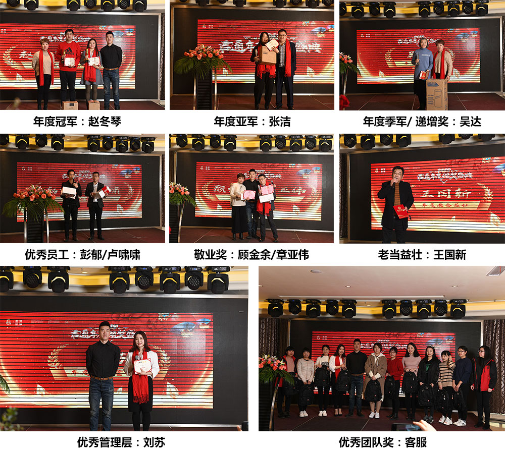 所取得的輝煌成就,離不開每位君通人的努力與付出,公司精心為大家準(zhǔn)備了眾多大獎獎勵給在2018年勤勤懇懇、任勞任怨、出類拔萃、兢兢業(yè)業(yè)的團隊與員工!分別頒發(fā)了年度冠亞季軍、遞增獎、員工獎敬業(yè)獎、老當(dāng)益壯、管理層及團隊獎,同時頒發(fā)了豐富獎品。