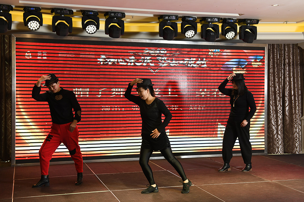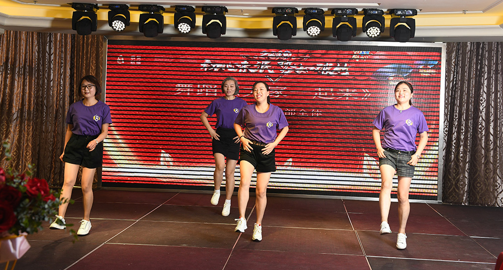 首先為我們開場的是市場部舞后劉紅、趙經(jīng)理等帶來的激情飛揚、絢麗奔放的舞蹈《大家一起來》: