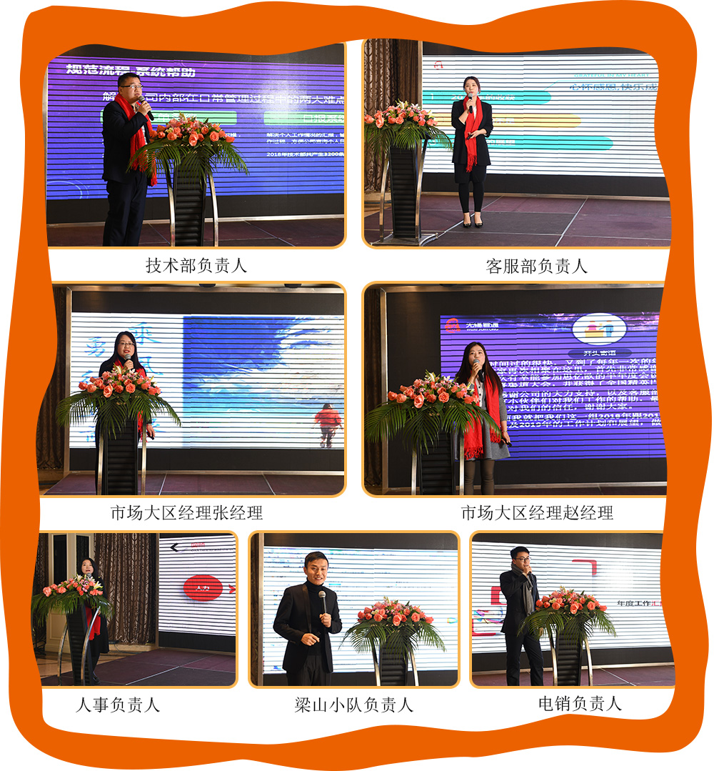 接下來是我們君通的各個銷售部門負(fù)責(zé)人、兩位市場大區(qū)經(jīng)理趙經(jīng)理、張經(jīng)理上臺為大家總結(jié)發(fā)言: