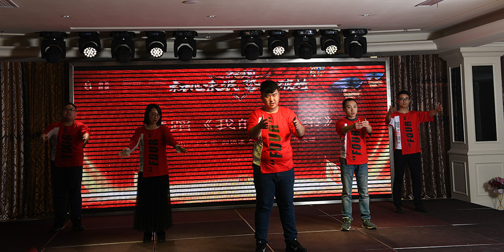 是由我們的三大團隊為我們帶來的團隊節(jié)目:梁山小分隊的手語舞《我的好兄弟》歌聲激情澎湃,手指舞情誼深厚,365個日夜,大家一起經(jīng)歷過風(fēng)雨洗禮、跌宕起伏、浴血奮戰(zhàn)、榮辱與共的情誼體現(xiàn)得淋漓盡致: